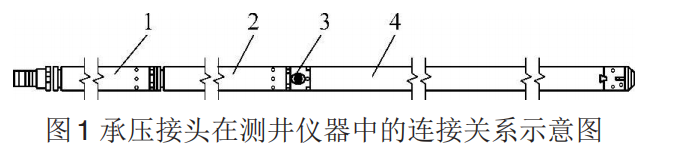 設計了承壓接頭連接儀器的探頭短節和電子線路短節,該承壓接頭提供了有效的電連接通道,從而解決石油測井儀器耐高溫高壓電連接問題。承壓接頭主要由接頭體構成,由17-4PH不銹鋼制成。對接頭體進行了強度分析和試驗測試,結果滿足要求。該設計已成功應用于感應測井儀器和聲波測井儀器,進行產業化生產,已取得不錯的經濟效果。
